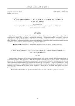 Štefanac, Samo. "Začetki arhitekture "all'antica" na obalah Jadrana v 15. stoletju."