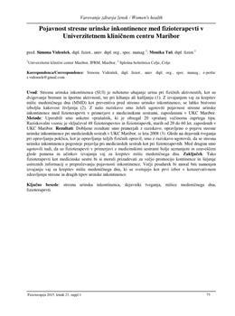 Videnšek, Simona, Tuš, Monika. "Pojavnost stresne urinske inkontinence med fizioterapevti v Univerzitetnem kliničnem centru Maribor."