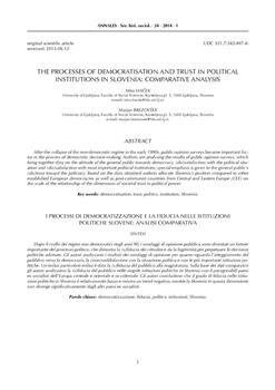 Haček, Miro, Brezovšek, Marjan (2014). The processes of democratisation and trust in political institutions in Slovenia.