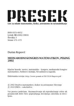 Repovš, Dušan (2002). Mednarodni kongres matematikov, Peking 2002.