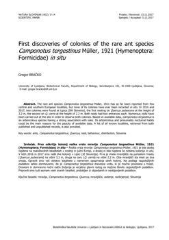 Bračko, Gregor (2017). First discoveries of colonies of the rare ant species Camponotus tergestinus Müller, 1921 (Hymenoptera: Formicidae) in situ.
