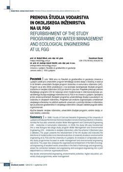 Mikoš, Matjaž, Istenič Starčič, Andreja (2014). Prenova študija vodarstva in okoljskega inženirstva na UL FGG.