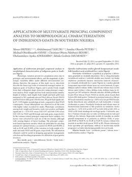 Okpeku, Moses, Yakubu, Abdulmojeed, Peters, Sunday Olusola, Ozoje, Michael Ohiokhuaobo, Ikeobi, Christina Obiora Ndubuisi, Adebambo, Olufunmilayo Ayoka, Imumorin, Ikhide Godwin. "Application of multivariate principal component analysis to morphological characterization of indigenous goats in SOuthern Nigeria."