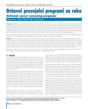 Primic-Žakelj, Maja, Krajc, Mateja, Zadnik, Vesna. "Državni presejalni programi za raka."