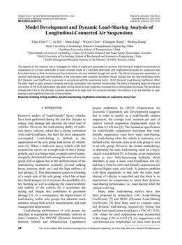 Chen, Yikai, He, Jie, King, Mark, Wuwei, Chen, Wang, Changjun, Zhang, Weihua (2013). Model development and dynamic load-sharing analysis of longitudinal-connected air suspensions.
