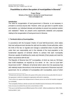 Žohar, Franci. "Possibilities to reform the system of municipalities in Slovenia."