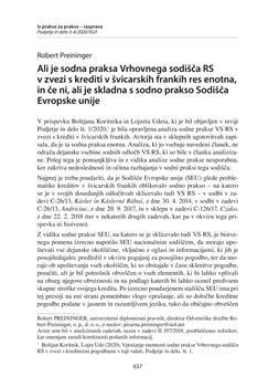 Preininger, Robert (2020). Ali je sodna praksa Vrhovnega sodišča RS v zvezi s krediti v švicarskih frankih res enotna, in če ni, ali je skladna s sodno prakso Sodišča Evropske unije.