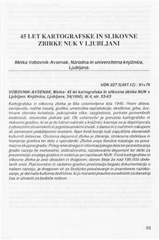 Vobovnik-Avsenak, Metka. "45 let kartografske in slikovne zbirke NUK v Ljubljani."