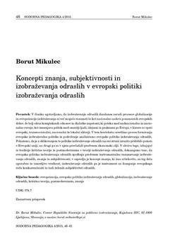 Mikulec, Borut. "Koncepti znanja, subjektivnosti in izobraževanja odraslih v evropski politiki izobraževanja odraslih."