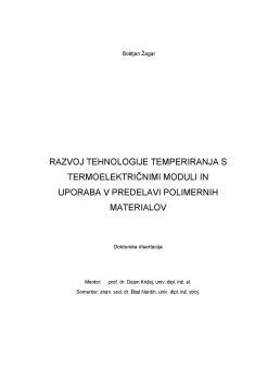 Razvoj tehnologije temperiranja s termoelektričnimi moduli in uporaba v predelavi polimernih materialov.
