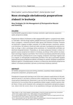 Gradišar, Meta, Markovič Božič, Jasmina, Spindler-Vesel, Alenka. "Nove strategije obvladovanja pooperativne slabosti in bruhanja."
