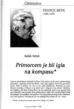 SAŠA VUIGA (2000). Obletnice......FRANCE BEVK (1890-1970).