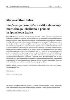 Šifrar Kalan, Marjana. "Poučevanje besedišča z vidika delovanja mentalnega leksikona s primeri iz španskega jezika."
