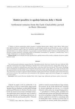 Kramberger, Bine, Bizjak, Ivo, Tušek, Ivan. "Sledovi poselitve iz zgodnje bakrene dobe v Hočah."
