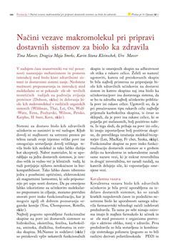 Maver, Tina, Smrke, Dragica, Stana-Kleinschek, Karin, Maver, Uroš. "Načini vezave makromolekul pri pripravi dostavnih sistemov za biološka zdravila."