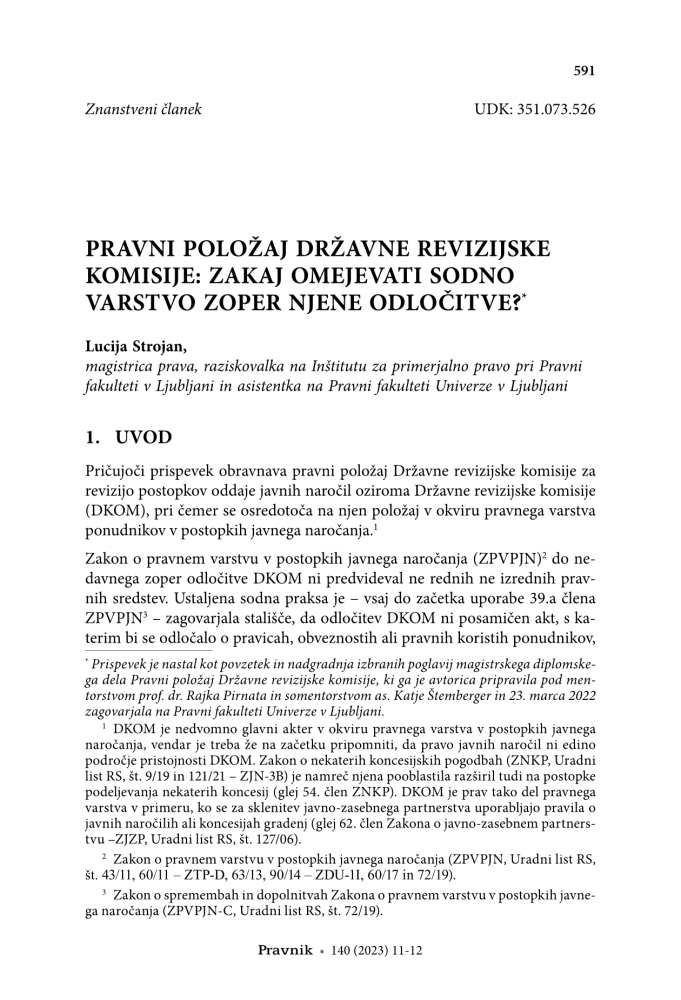 Strojan, Lucija (2023). Pravni položaj Državne revizijske komisije.