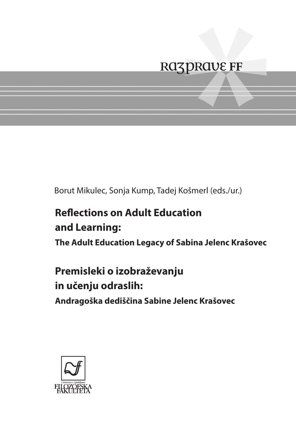 Reflections on adult education and learning : the adult education legacy of Sabina Jelenc Krašovec