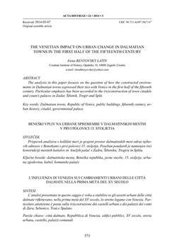 Benyovsky, Irena (2014). The Venetian impact on urban change in Dalamtian towns in the first half of the fifteenth century.