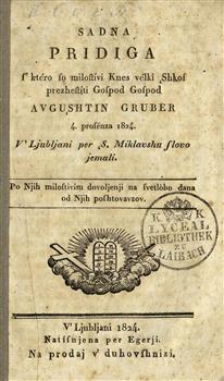 Sadna pridiga s' ktéro so milostívi knes vélki shkof prezhestíti gospod gospod Avgushtin Gruber 4. prosénza 1824. v' Ljubljani per S. Miklavshu slovo jemali.