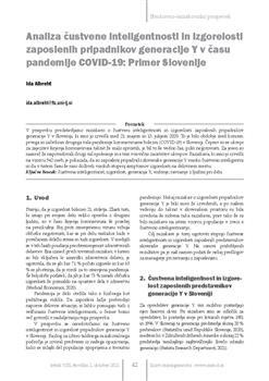 Albreht, Ida. "Analiza čustvene inteligentnosti in izgorelosti zaposlenih pripadnikov generacije Y v času pandemije COVID-19."