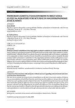 Bohak, Zarja, Borec, Andreja. "Primerjava kmetij z naslednikom in brez njega glede na nekatere strukturne in socioekonomske značilnosti."