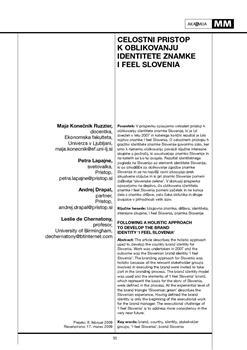 Konečnik Ruzzier, Maja, Lapajne, Petra, Drapal, Andrej, De Chernatony, Leslie. "Celostni pristop k oblikovanju identitete znamke I feel Slovenia."