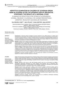 Kmet Lunaček, Nina, Poljak, Mario, Zakotnik, Breda, Matičič, Mojca. "Hepatitis B elimination in children of Slovenian origin born in Slovenia after the introduction of preventive strategies."
