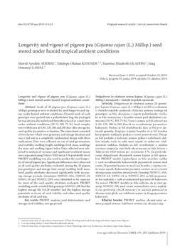 Adebisi, Moruf Ayodele, Kehinde, Tolulope Olaitan, Oladipo, Tunmise Elizabeth, Lawal, Isiaq Omoniyi (2019). Longevity and vigour of pigeon pea (Cajanus cajan (L.) Millsp.) seed stored under humid tropical ambient conditions.