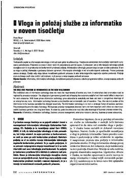 Brcar, Franc, Lah, Silvo. "Vloga in položaj službe za informatiko v novem tisočletju."