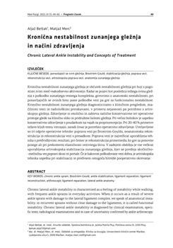 Belšak, Aljaž, Merc, Matjaž. "Kronična nestabilnost zunanjega gležnja in načini zdravljenja."
