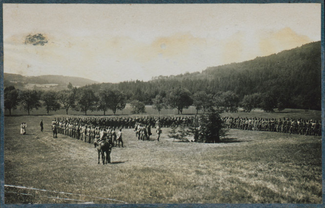 Bataljon Triglavskega polka pri proslavi Vidovdana 1919. leta v Malem Šentvidu na Koroškem (1919). URN:NBN:SI:IMG-FGWN2BMV from http://www.dlib.si