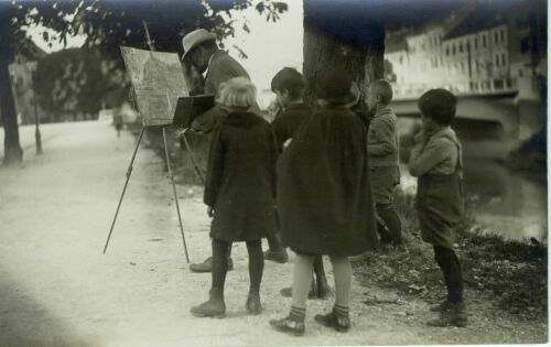 Ivan Vavpotič (1877-1943) riše na bregu Ljubljanice (192?).