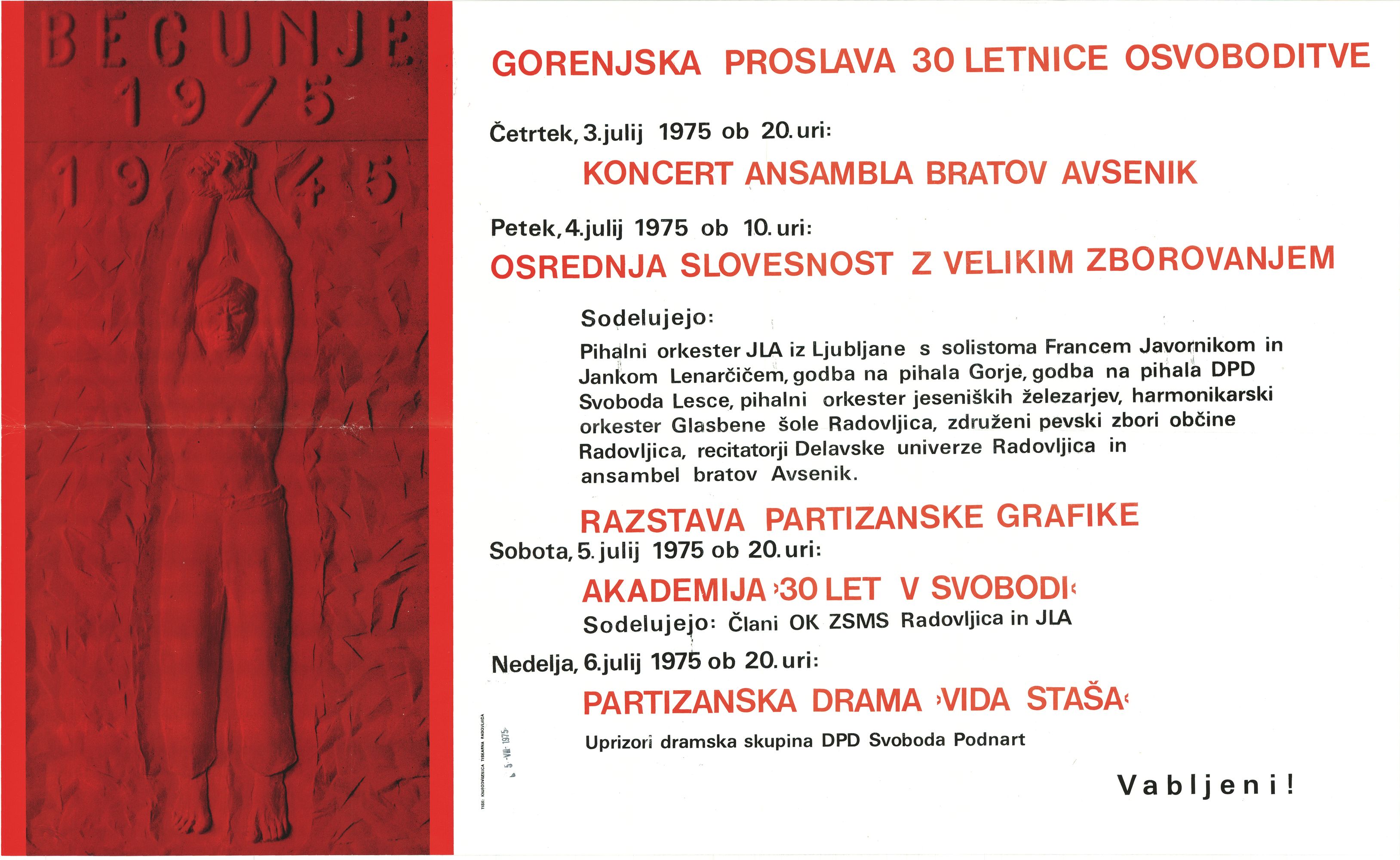 Gorenjska proslava 30 letnice osvoboditve (1975).