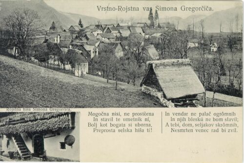 Jerkič, Anton (1906?). Vrstno i.e. Vrsno, rojstna vas Simona Gregorčiča. URN:NBN:SI:IMG-P43BYE5D from http://www.dlib.si