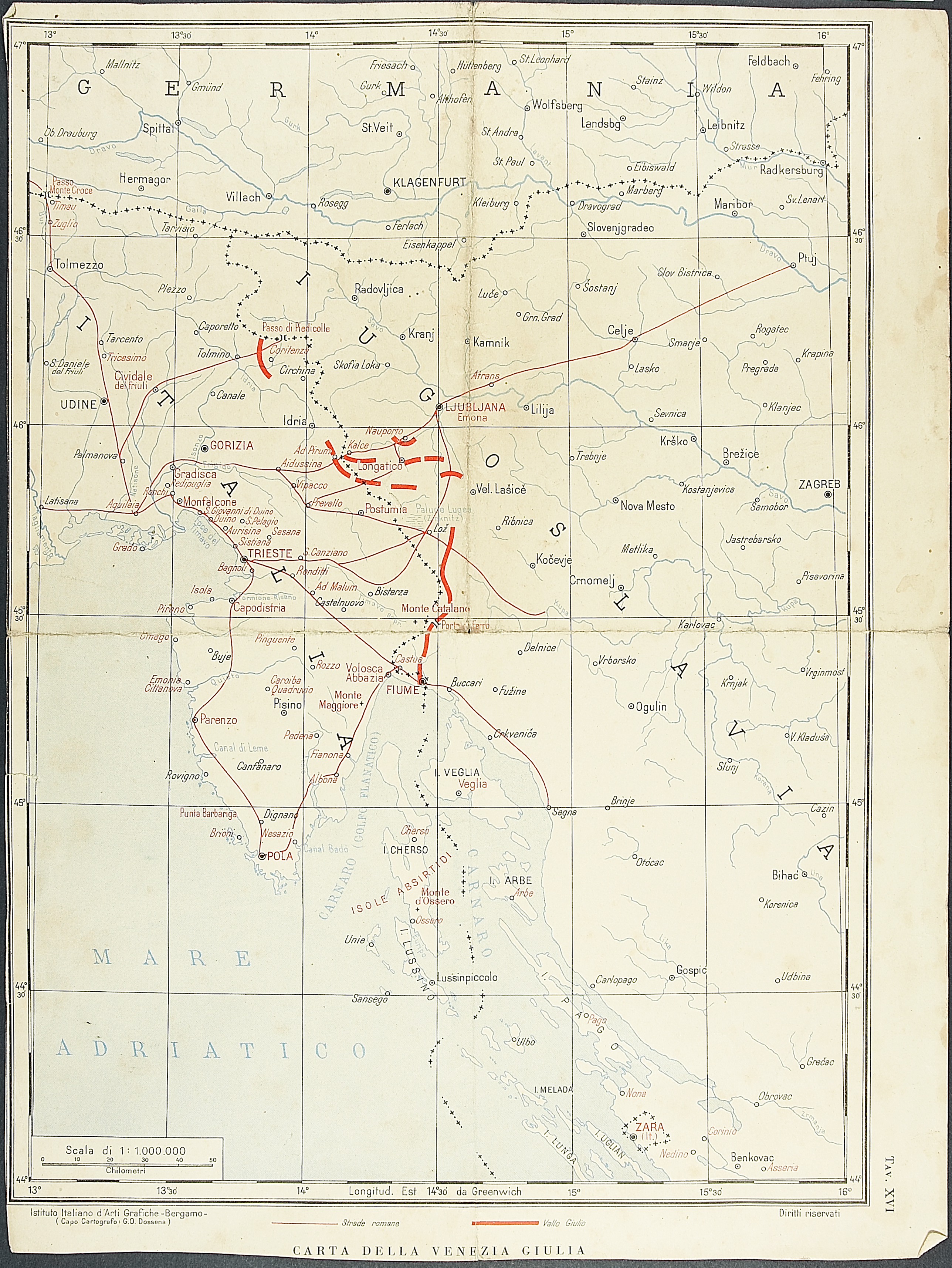 G. O. Dossena (????). Carta della Venezia Giulia.