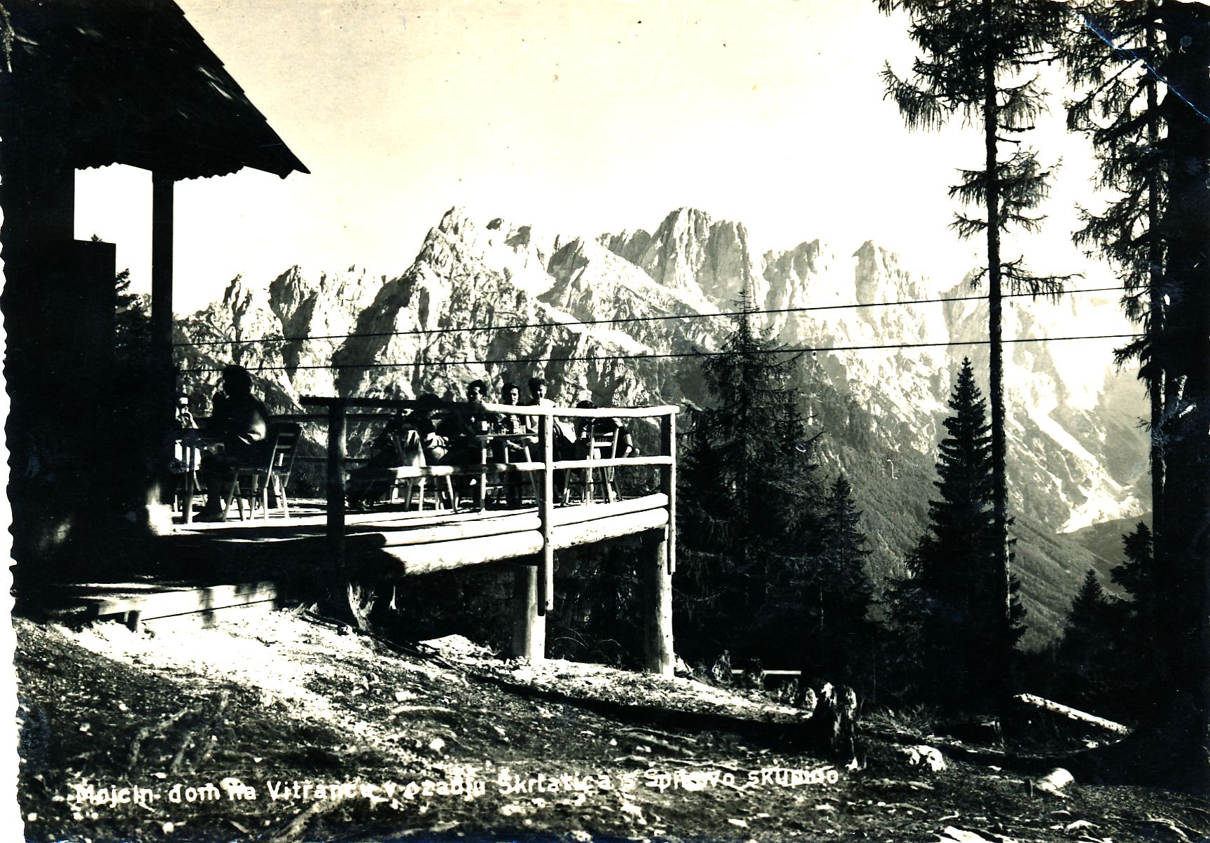 Mojcin dom na Vitrancu v ozadju Škrlatica s Špikovo skupino (1960-1961). URN:NBN:SI:IMG-PMXE2O7Q from http://www.dlib.si