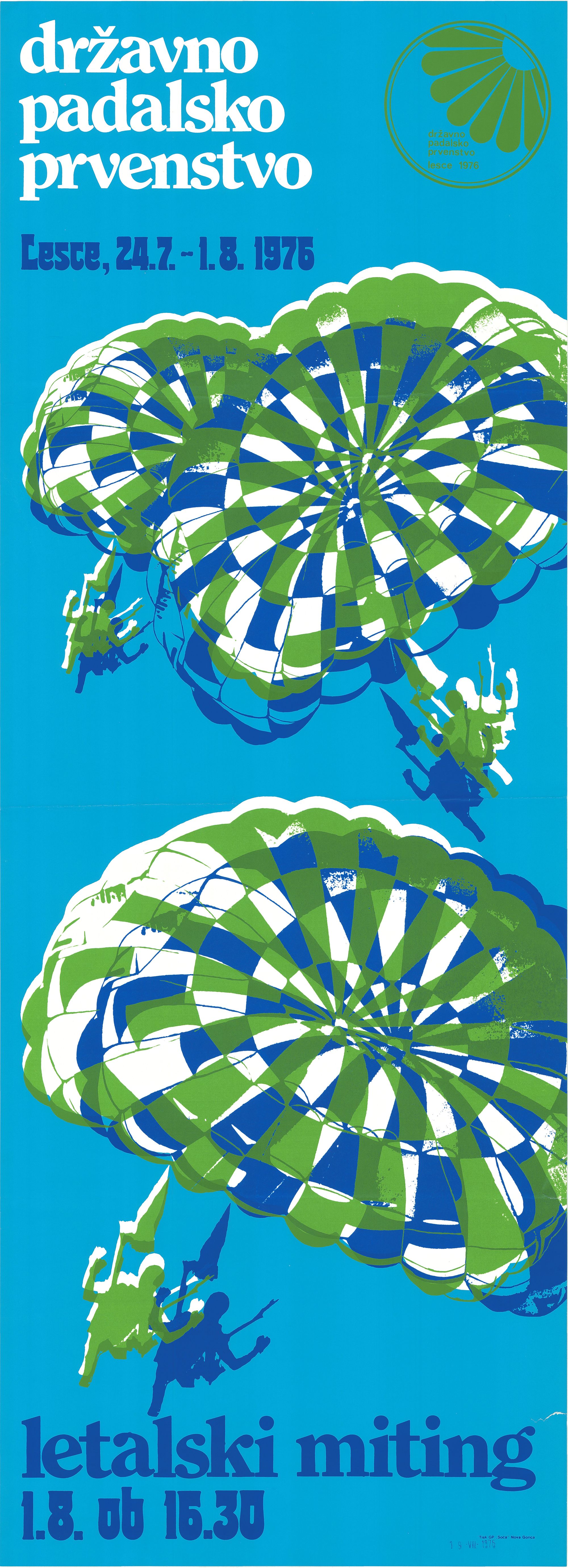 Državno padalsko prvenstvo : Lesce, 24. 7. - 1. 8. 1976 : letalski miting 1. 8. ob 16.30