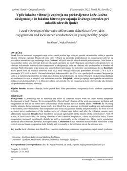 Grum, Jan, Potočnik, Nejka (2022). Vpliv lokalne vibracije zapestja na prekrvljenost kože, kožno oksigenacijo in lokalno hitrost prevajanja živčnega impulza pri mladih zdravih ljudeh.