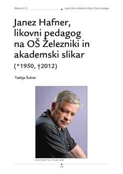 Hafner, Janez, Lunder, Tomaž, Šuštar, Tadeja. "Janez Hafner, likovni pedagog na OŠ Železniki in akademski slikar."