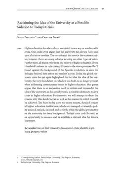 Pavlenko, Sonia, Bojan, Cristina (2014). Reclaiming the idea of the university as a possible solution to today's crisis.