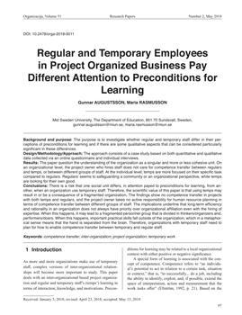 Augustsson, Gunnar, Rasmunson, Maria. "Regular and temporary employees in project organized business pay different attention to preconditions for learning."