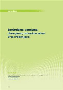 Božič, Lucija, Dular, Saša, Jazbec, Maja. "Spoštujemo, varujemo, ohranjamo; ustvarimo zeleni Vrtec Pedenjped."