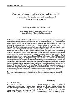 Zajc, Irena, Bervar, Aleš, Lah Turnšek, Tamara. "Cysteine cathepsins, stefins and extracellular matrix degradation during invasion of transformed human breast cell lines."