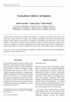 Pavčnik, Dušan, Cijan, Andrej, Bricelj, Vlado. "Transcatheter balloon valvuloplasty."
