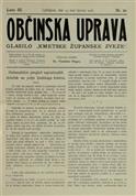 Občinska uprava : poučni stanovski list županom, občinskim tajnikom, občinskim svetovalcem in drugim javnim organom (29.04.1908), volume 3, issue 9. URN:NBN:SI:doc-CCFSLQNF from http://www.dlib.si