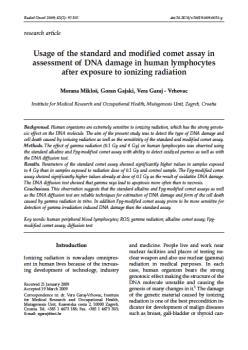 Mikloš, Morana, Gajski, Goran, Garaj Vrhovac, Verica (2009). Usage of the standard and modified comet assay in assessment of DNA damage in human lymphocytes after exposure to ionizing radiation.
