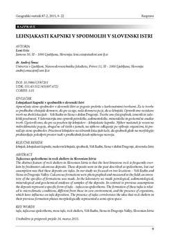 Ozis, Leni, Šmuc, Andrej, Pinosa, Katarina. "Lehnjakasti kapniki v spodmolih v slovenski Istri."