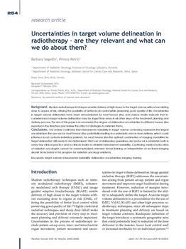 Šegedin, Barbara, Petrič, Primož. "Uncertainties in target volume delineation in radiotherapy."