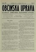 Občinska uprava : poučni stanovski list županom, občinskim tajnikom, občinskim svetovalcem in drugim javnim organom (10.05.1909), volume 4, issue 9. URN:NBN:SI:doc-GQJWCRJI from http://www.dlib.si