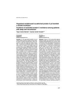 Marinko, Tanja, Goršič-Tomažič, Karmen. "Pogostost neodzivnosti na aktivirani protein C pri bolnikih z vensko trombozo."